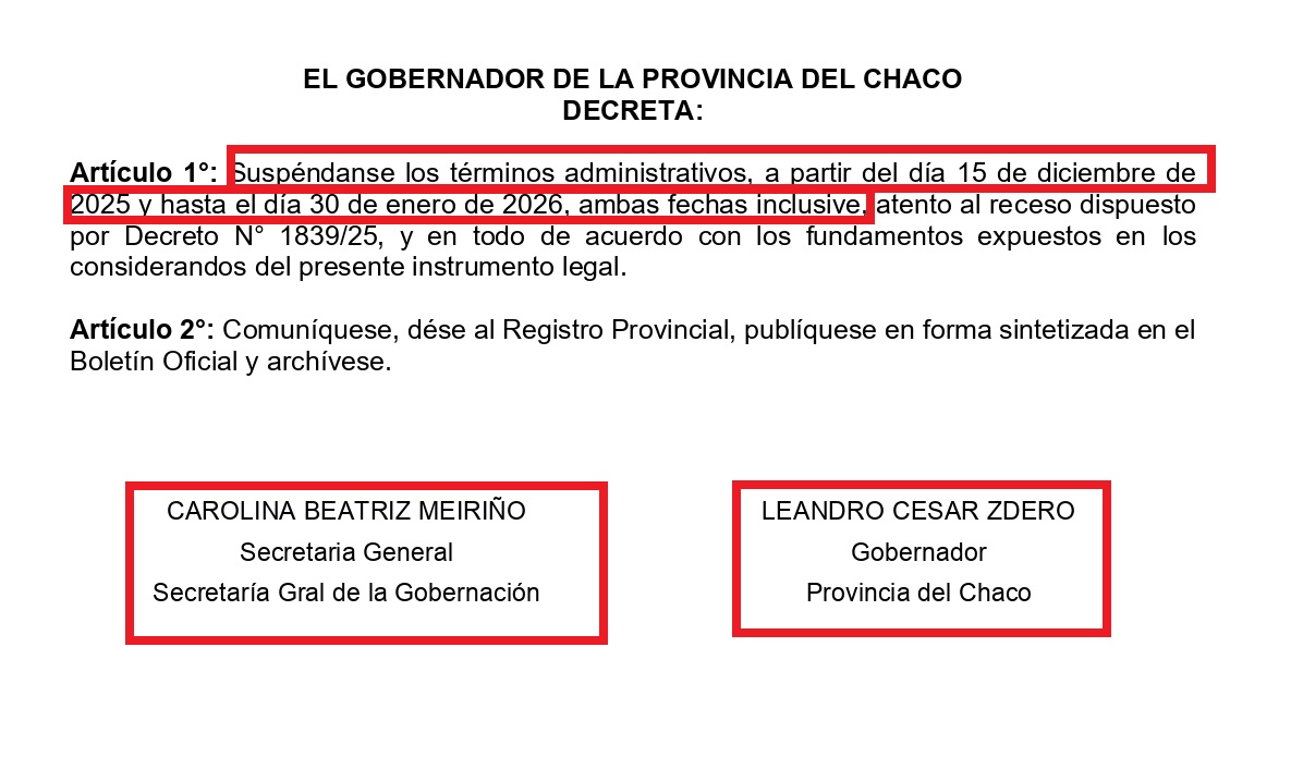 El Instituto Provincial de Desarrollo Urbano y Vivienda (IPDUV) quedó envuelto en un grave escándalo institucional y jurídico al ejecutar notificaciones masivas durante un período en el que los términos administrativos se encontraban expresamente suspendidos por decreto del gobernador Leandro César Zdero, configurando actos administrativos nulos de nulidad absoluta y una abierta desobediencia al Poder Ejecutivo provincial.